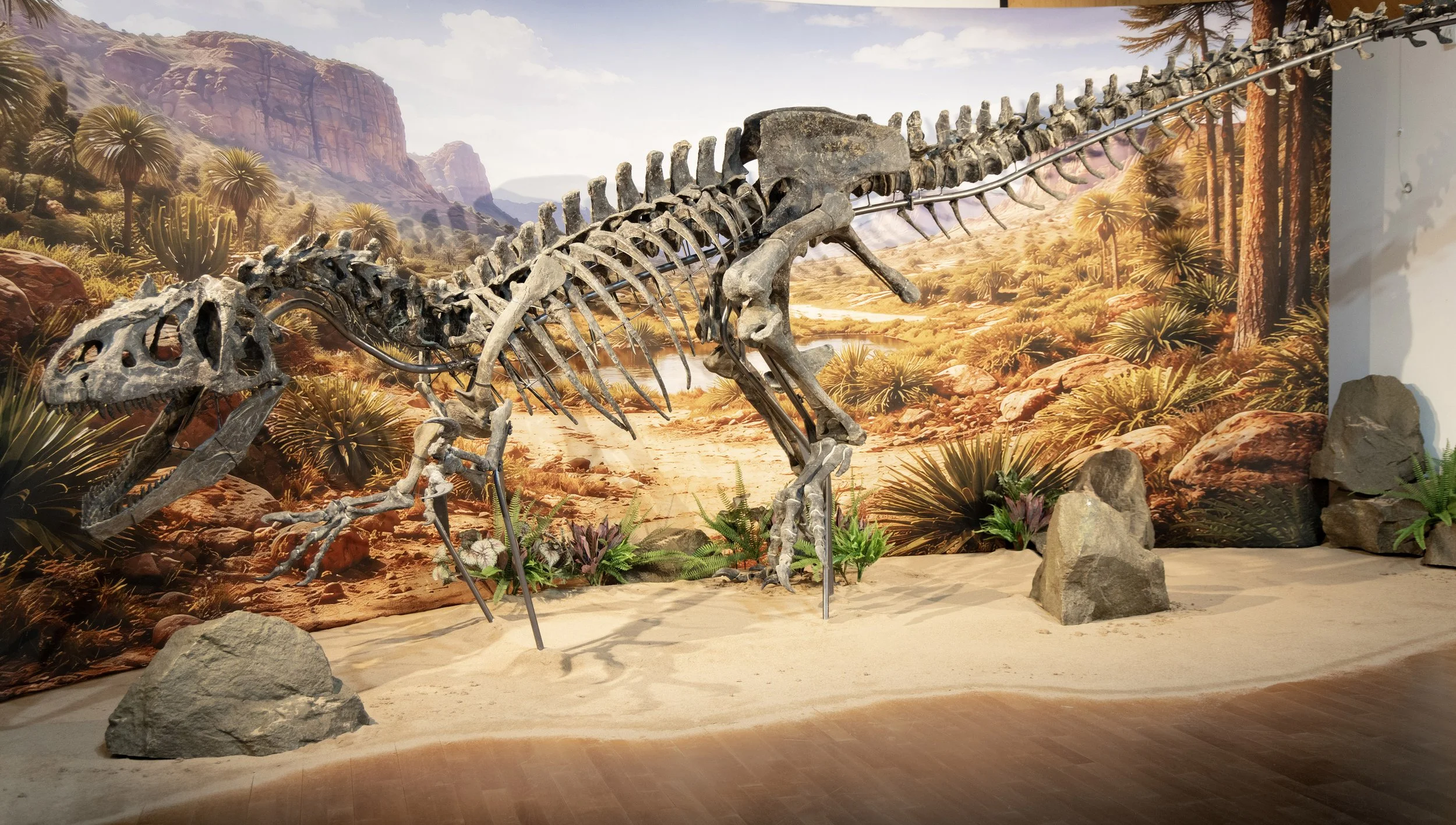Meet Big Sara, the newest and largest addition to The Etches Collection’s fossil family. Big Sara is an Allosaurus skeleton, cousin of the T-Rex, and top of the dinosaur food chain during the Kimmeridgian period. Spanning 10 metres long, this spectacular specimen has approximately 70% of her original bones intact, making Big Sara one of the most complete Allosaurus skeletons in the world. She was discovered in Wyoming in 2015 and is thought to have roamed the earth 150 million years ago during the upper Jurassic period - the very same time period that our Sea-Rex was dominating the seas!